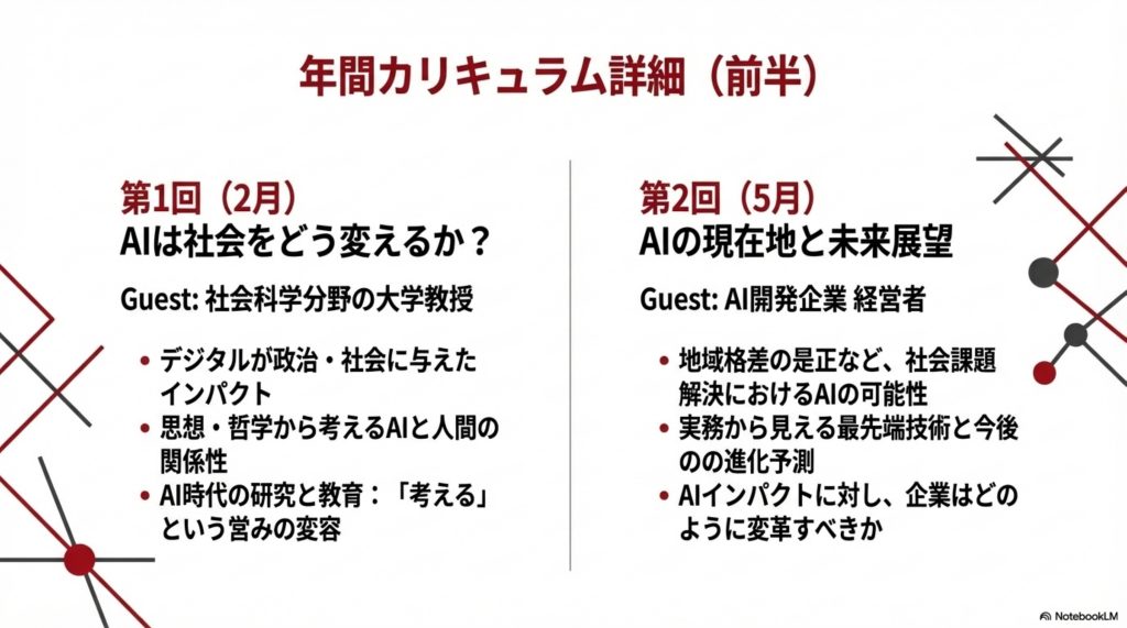 ゲストスピーカーとして、大学教授、IT企業経営者、政治家、アーティストなど多様な分野の有識者をお呼びし、年4回(2月・5月・8月・11月)のイベントを開催いたします。